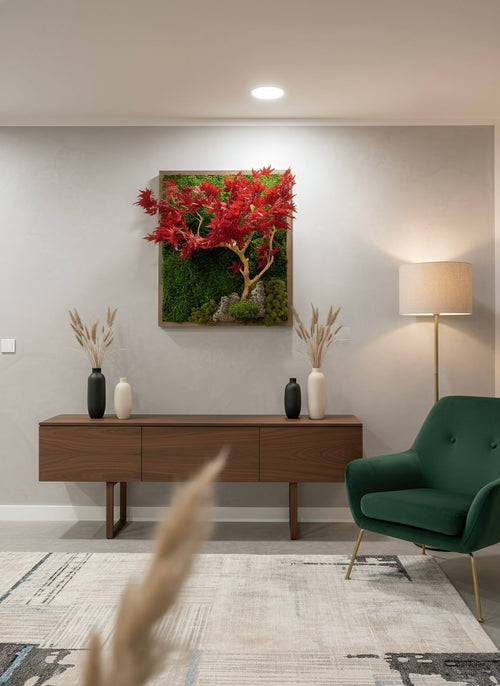 Tutta la maestosità e il fascino del bonsai in una miniatura artigianale stabilizzata che non richiede cure: un tocco di natura eterna per arricchire con eleganza ogni ambiente interno.